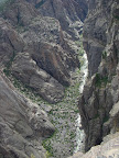 Black Canyon was the destination of the day. Black Canyon was another awe-inspiring landscape but again a little unnerving. The bus took roads that seemed narrow and very far from the ground. But at the end, we were able to experience the Black Canyon of the Gunnison. This is a very deep and sometime narrow canyon. We visited several places to look down at the canyon and to discuss the intrusions found throughout the canyon. Rick explained how the canyon developed and the significance of the morphologies.