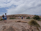 After Longhorn Cavern, we traveled to Enchanted Rock and climbed to the top. Rick explained the intrusions due to fractures, exfoliation of the granite and discussed the batholith and lacolith. It was great fun going to the top. As for chemistry, some of the dark markings on the granite are due to manganese (II) oxide. First time I see it, used to manganese (IV) oxide.