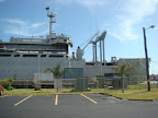 Passed through Bolivar peninsula and noticed the huge erosion at the beach. Look at the picture to see where the boat ramp used to be. We took the ferry (that was cool, never been on one) to to take us to the Galveston side and stopped at our destination, the Texas Clipper III, which was where we spent the night.